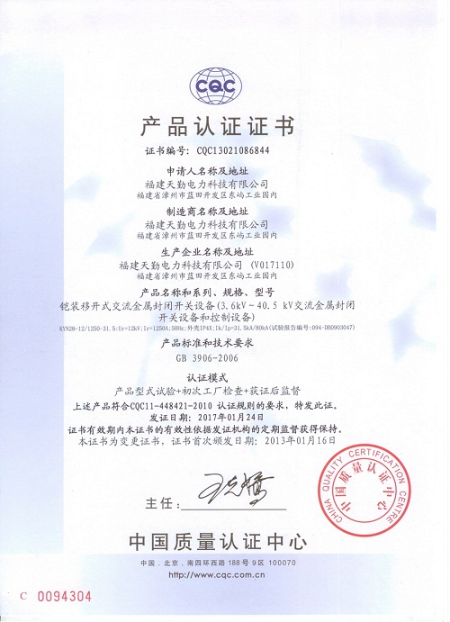 KYN28-12-CQC認證證書(shū)中(zhōng)文版
