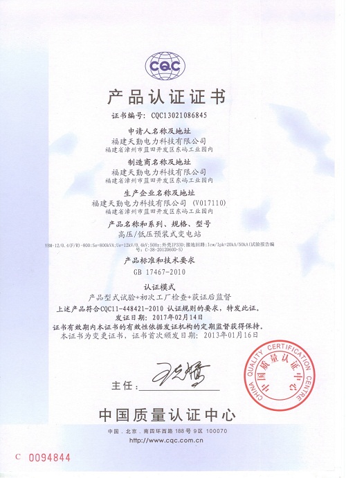 YBM-CQC認證證書(shū)中(zhōng)文版