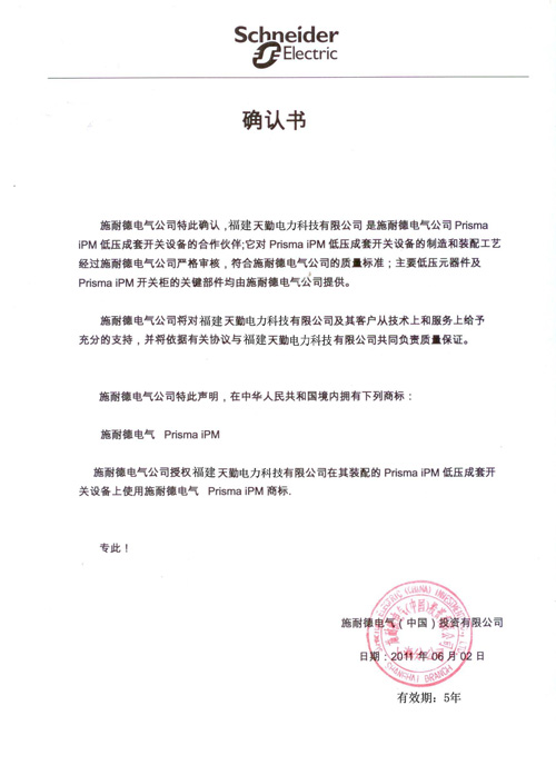 Schneider—Prisma授權書(shū)
